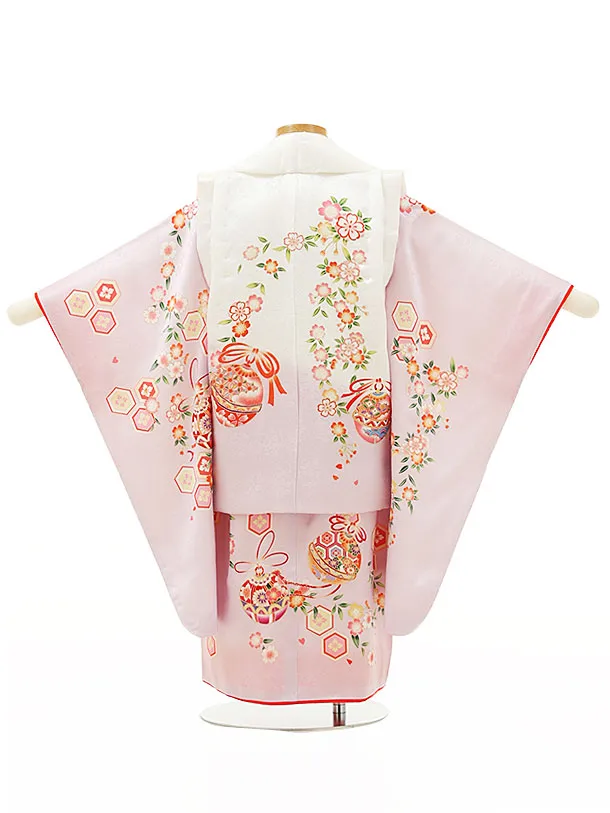七五三レンタル(3歳女児被布)4332【正絹】白藤色ぼかしx藤色鈴桜