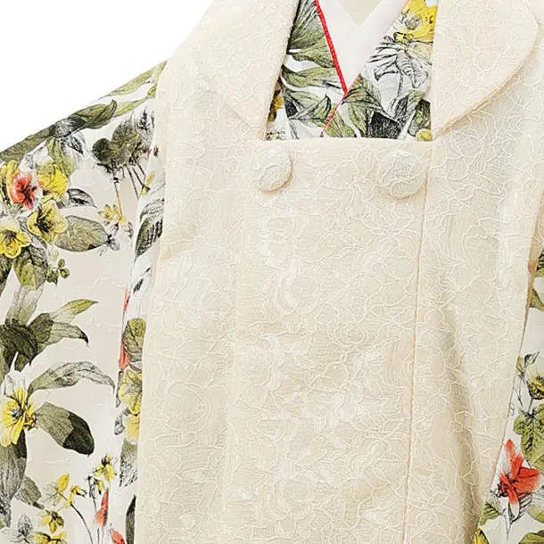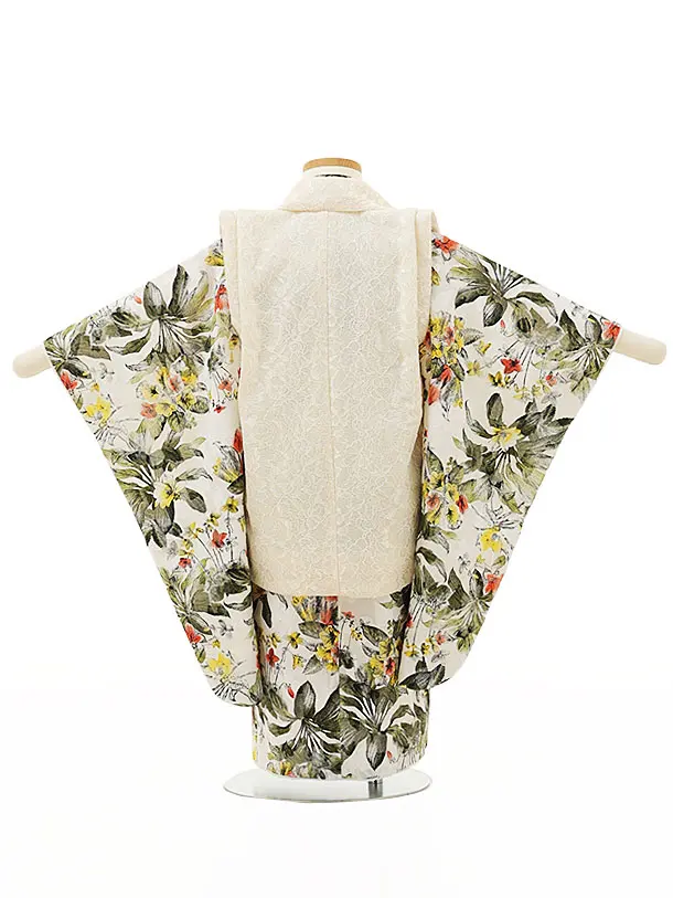 七五三レンタル(3歳女児被布)4340クリームピンクレースx白ボタニカル
