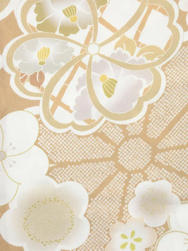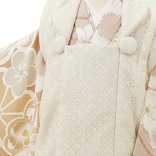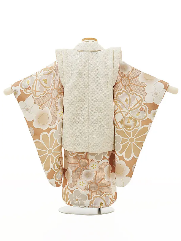 七五三レンタル(3歳女児被布)4346アイボリーレースxモカベージュ梅菊