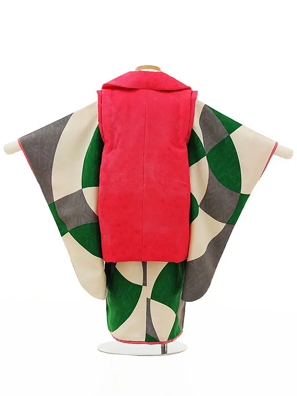 七五三(3歳女児被布)4364モダンアンテナピンクダメージxグレーグリーン