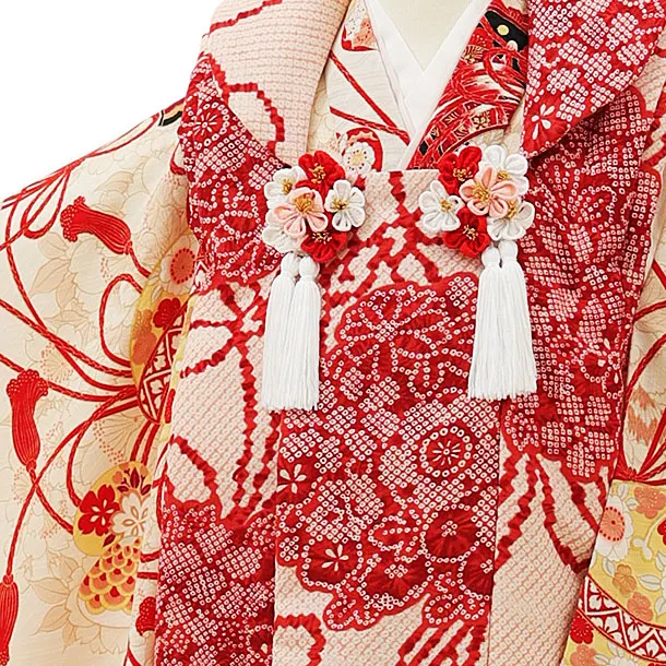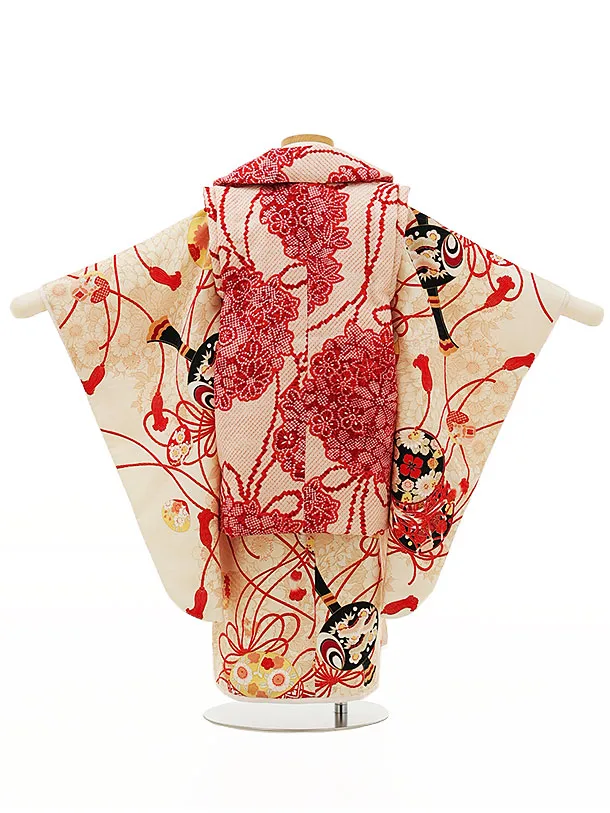 七五三レンタル(3歳女児被布)4367華徒然ピンクxクリーム花薬玉
