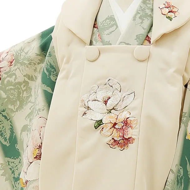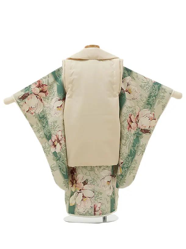 七五三(3歳女児被布)4371SUGARKEIライトベージュxグリーン木蓮
