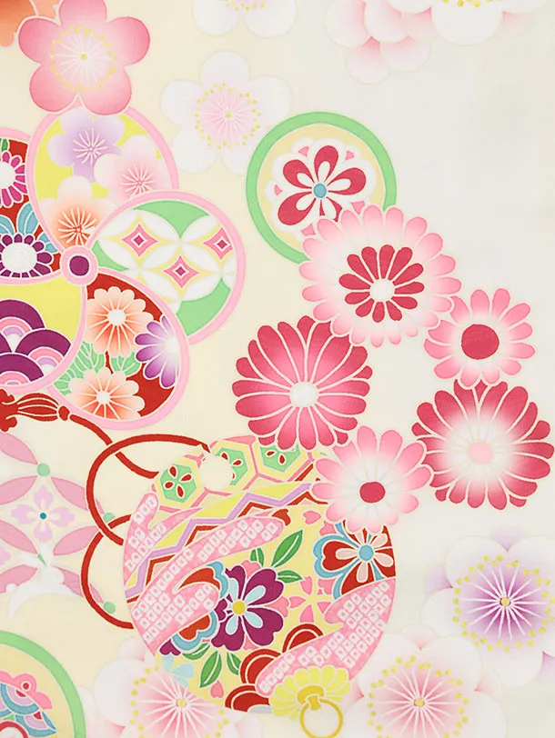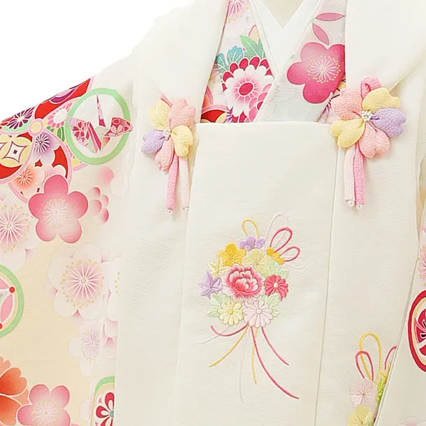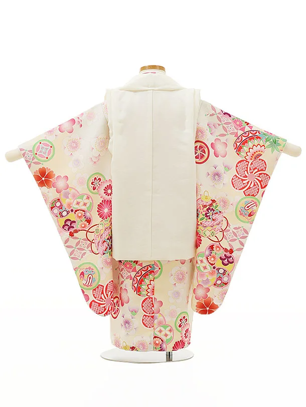 七五三レンタル(3歳女児被布)4380白刺繍薬玉xクリーム鞠梅