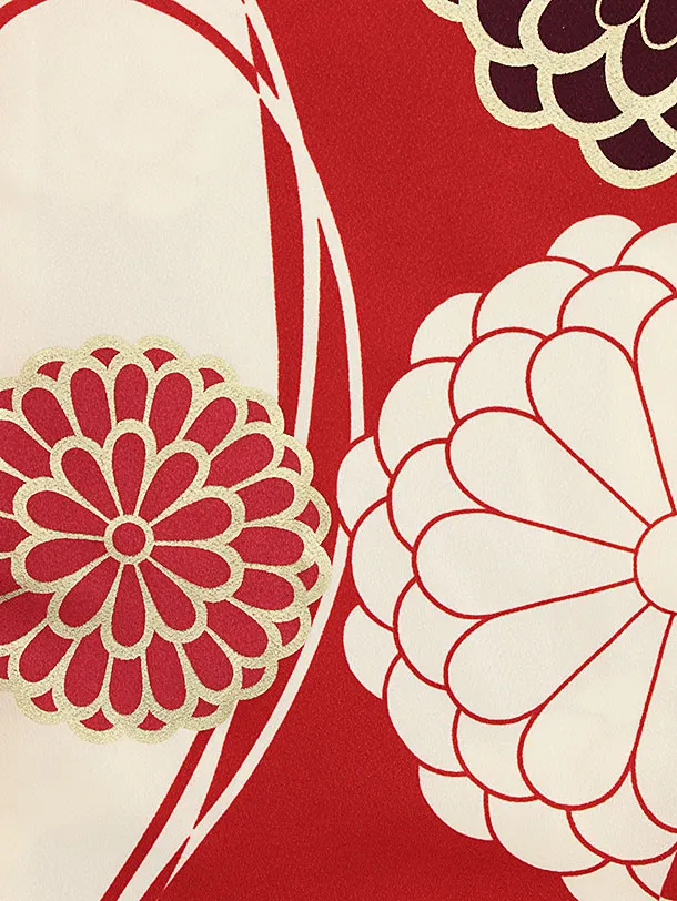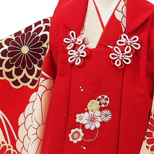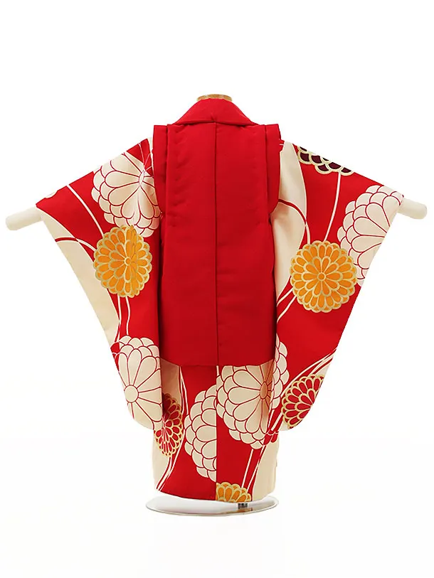 七五三レンタル(3歳女児被布)4393赤刺繍桜菊x赤クリーム菊
