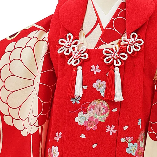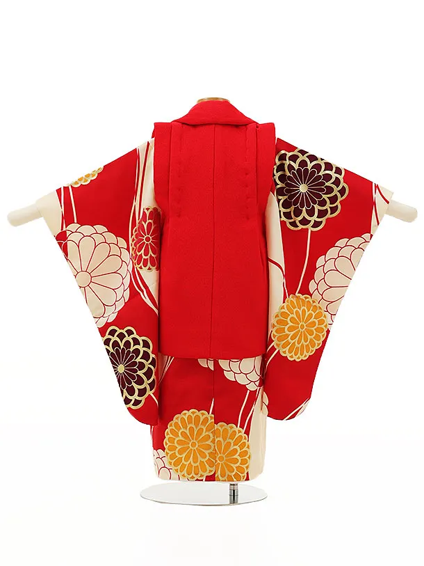 七五三レンタル(3歳女児被布)4395赤刺繍桜鞠x赤クリーム菊