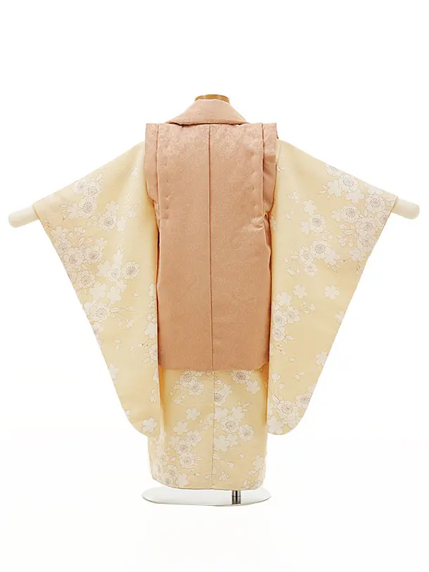 七五三レンタル(3歳女児被布)4398ピンクxクリームイエロー桜