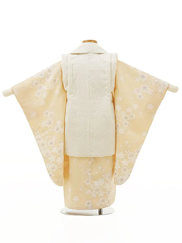 七五三レンタル(3歳女児被布)4399白xクリームイエロー桜