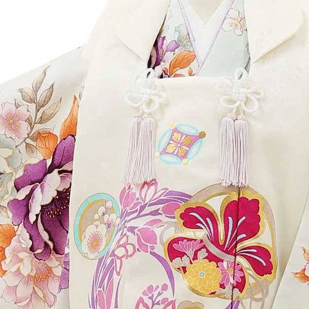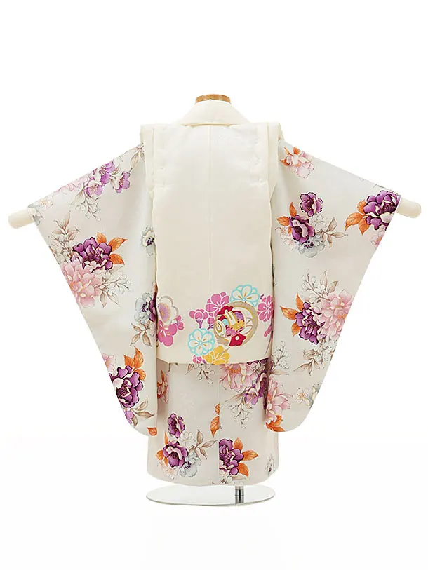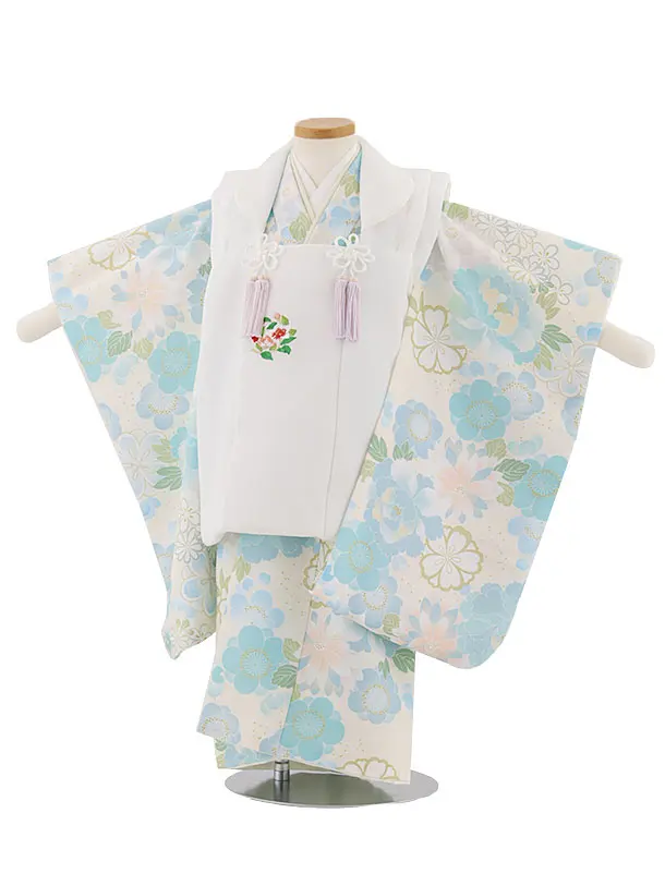 七五三レンタル(3歳女児被布)4401白花丸吉祥文様xペールブルーブーケ