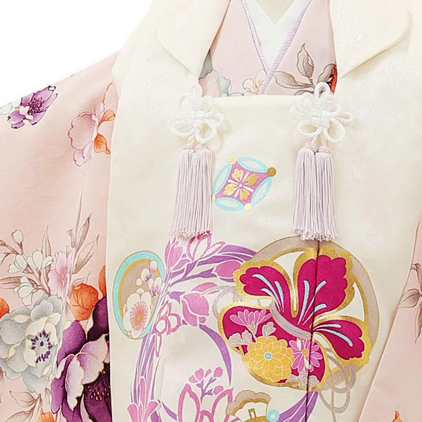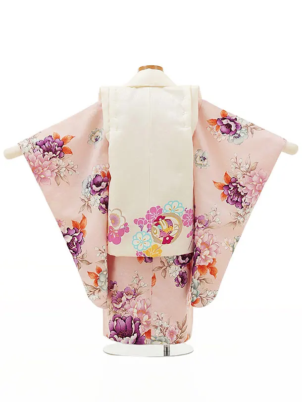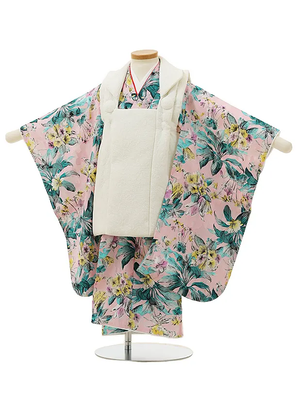 七五三レンタル(3歳女児被布)4405白花丸吉祥文様xピンクブーケ