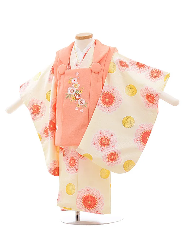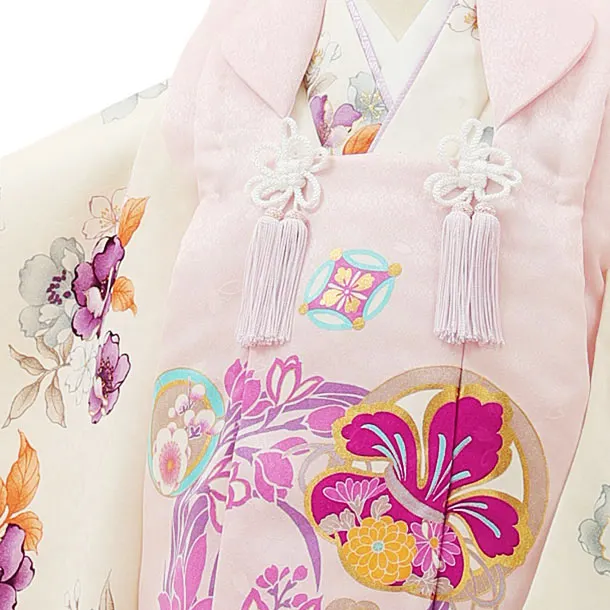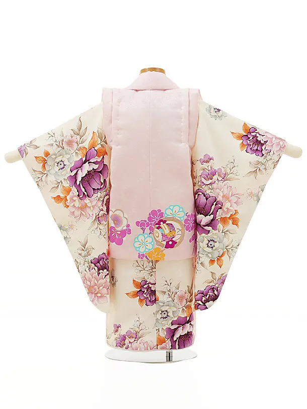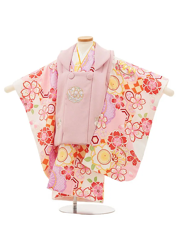 七五三レンタル(3歳女児被布)4410ピンク花丸吉祥文様x白ブーケ