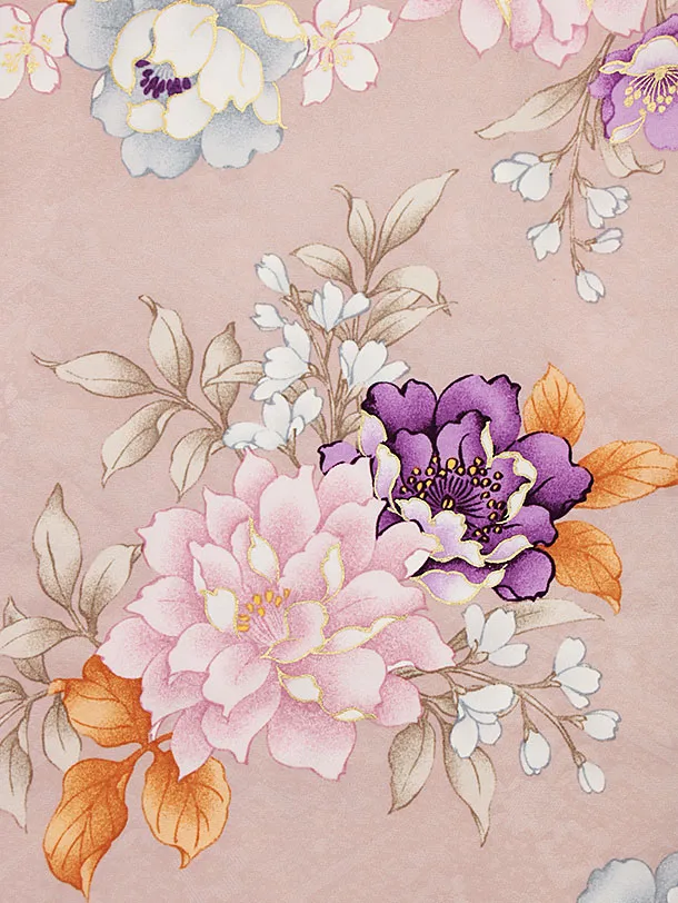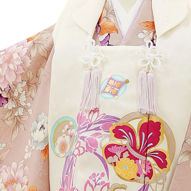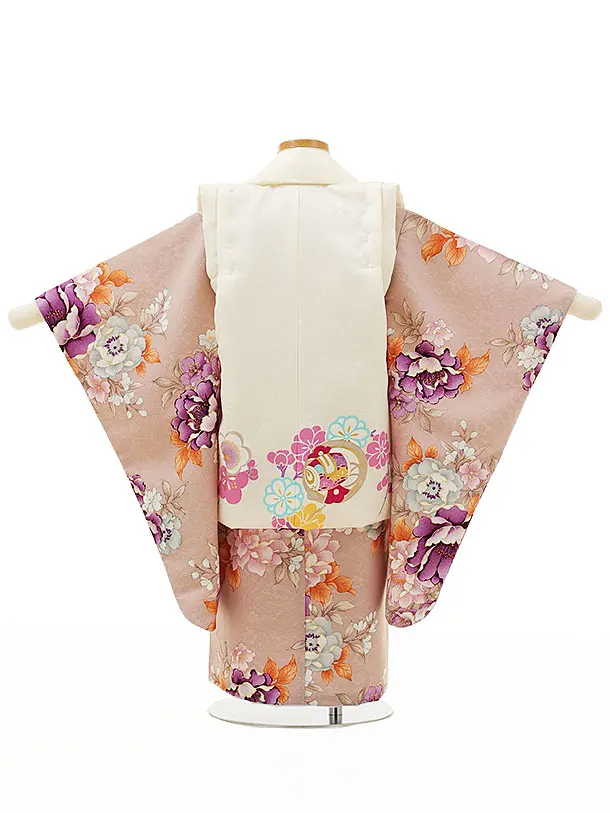 七五三レンタル(3歳女児被布)4416白花丸吉祥文様xパープルベージュブーケ