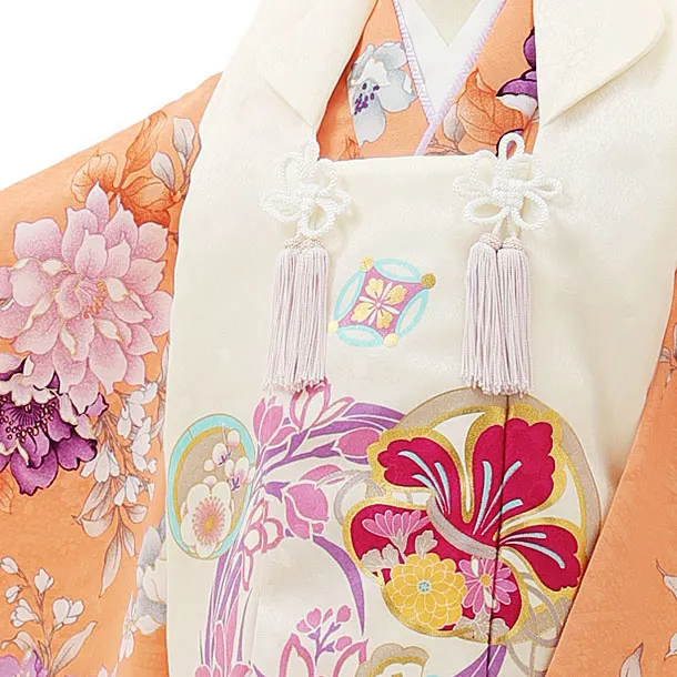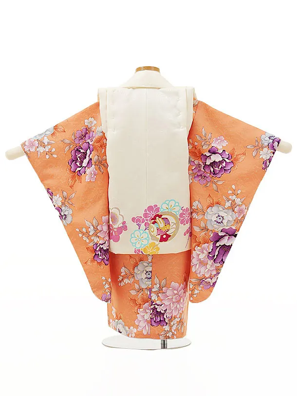 七五三レンタル(3歳女児被布)4420白花丸吉祥文様xオレンジブーケ