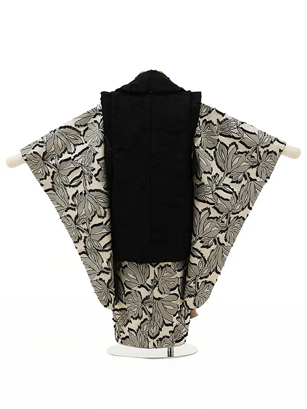 七五三レンタル(3歳女児被布)4424黒xアイボリー洋花
