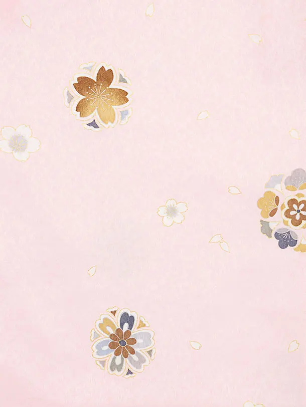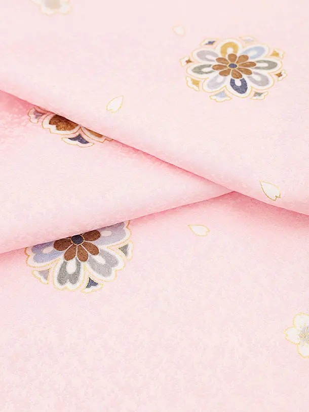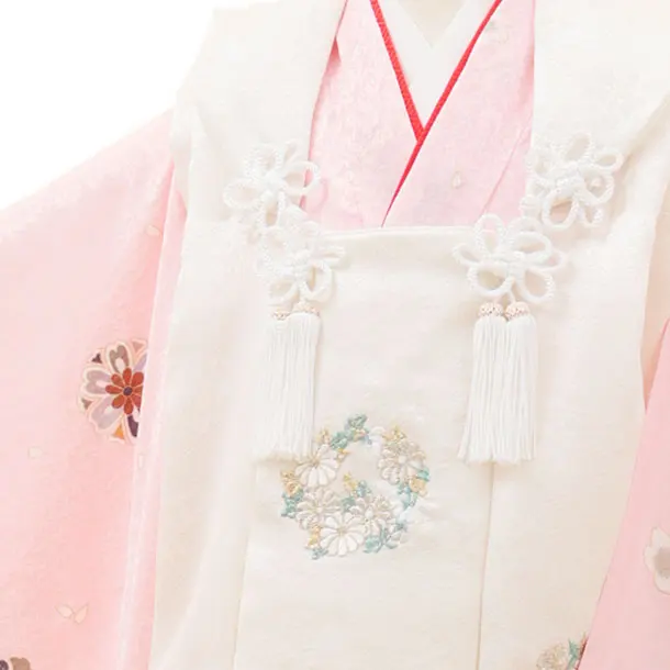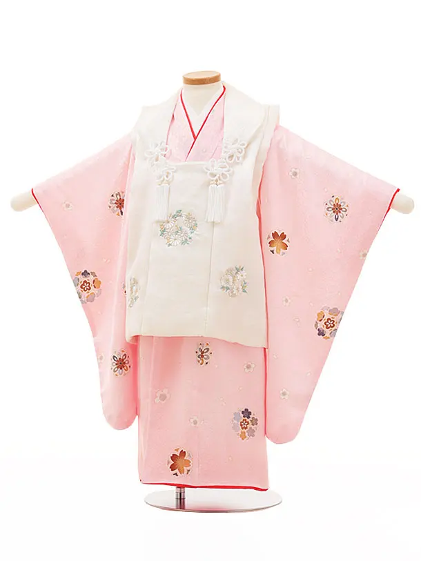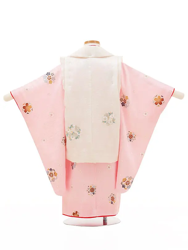 七五三レンタル(3歳女児被布)4429【正絹】白刺繍花丸xピンク桜小紋