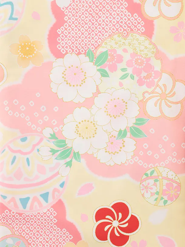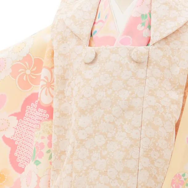 七五三レンタル(3歳女児被布)4462ベージュ小花xたまご色桜鞠
