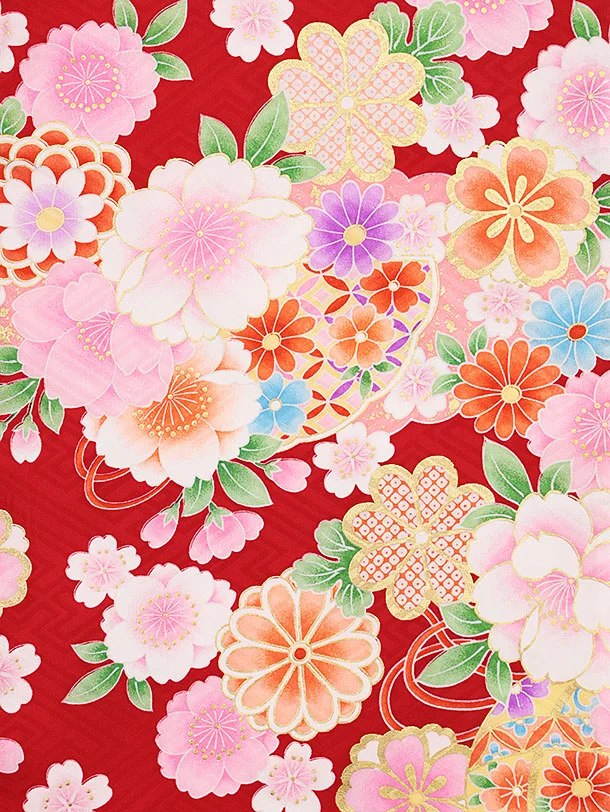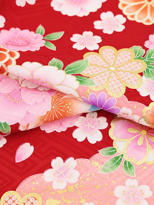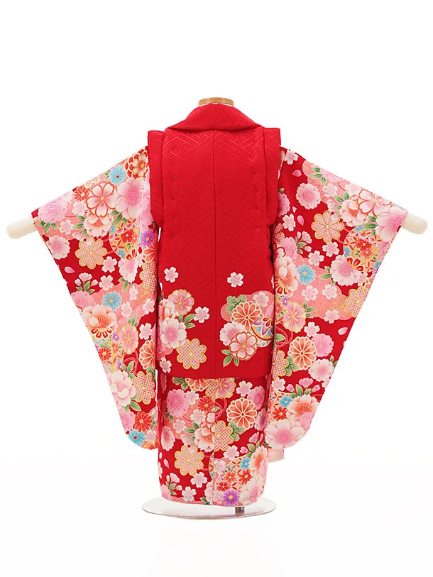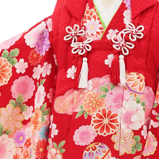 七五三レンタル(3歳女児被布)4463【正絹】赤x赤雲取り鞠桜