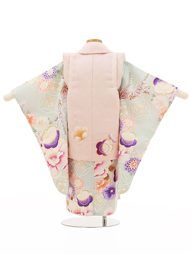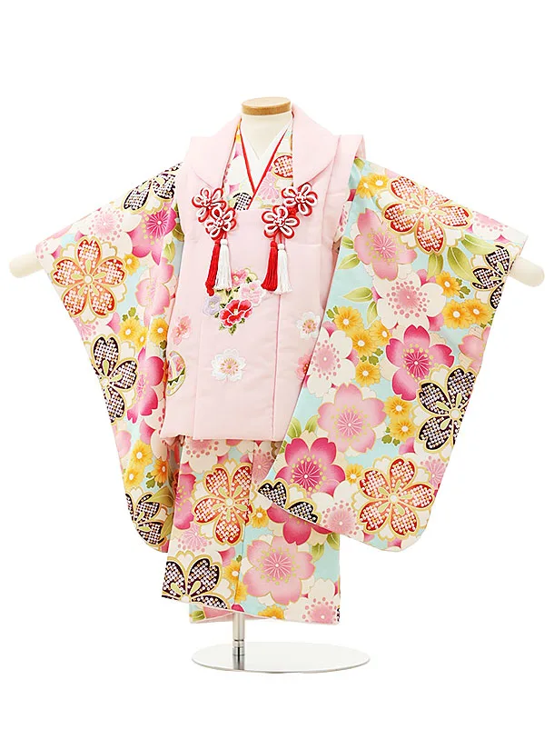 七五三レンタル(3歳女児被布)4480ピンクx水色梅菊牡丹