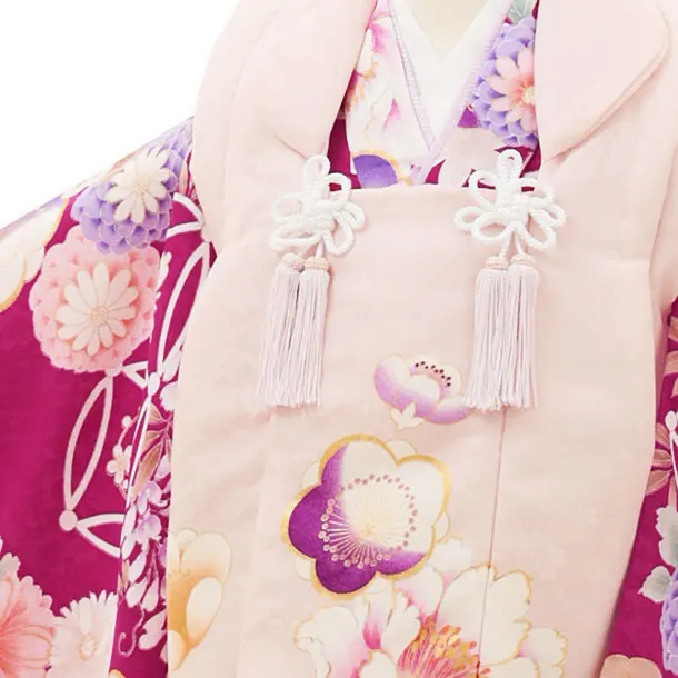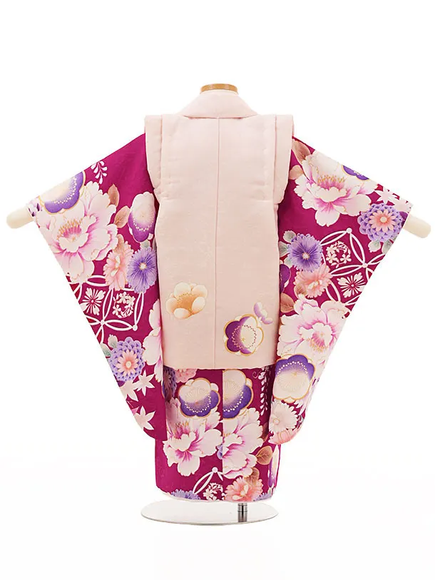 七五三レンタル(3歳女児被布)4486ピンクxバーガンディ梅菊牡丹
