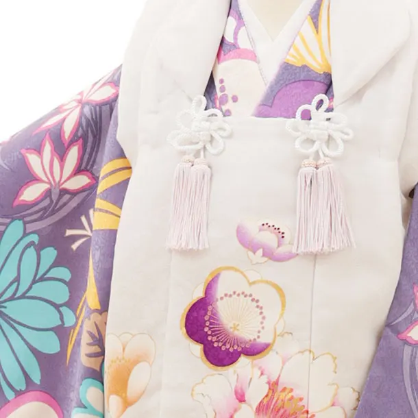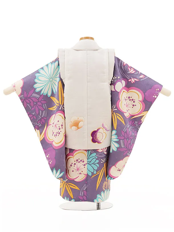七五三レンタル(3歳女児被布)4490白xパープル梅菊