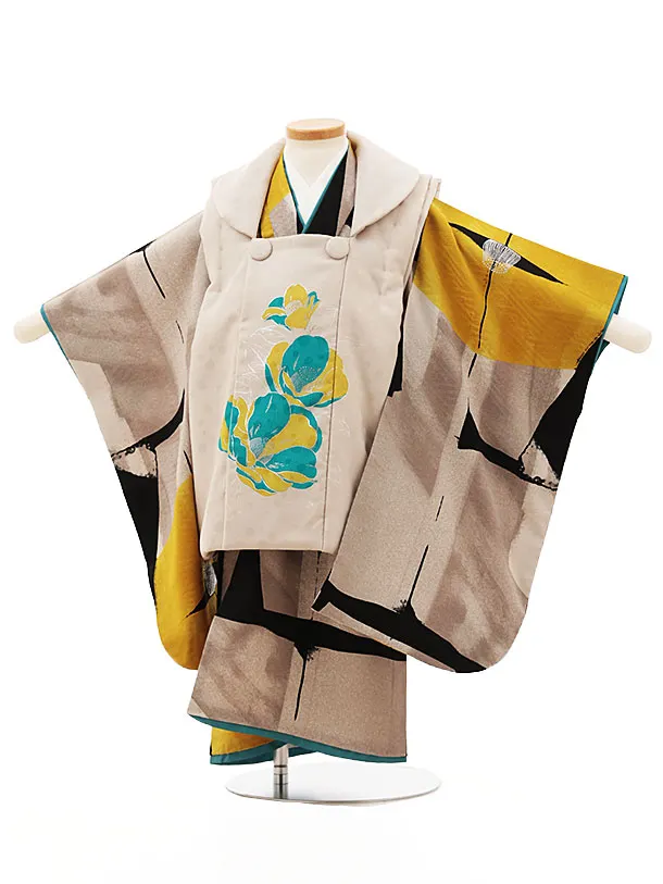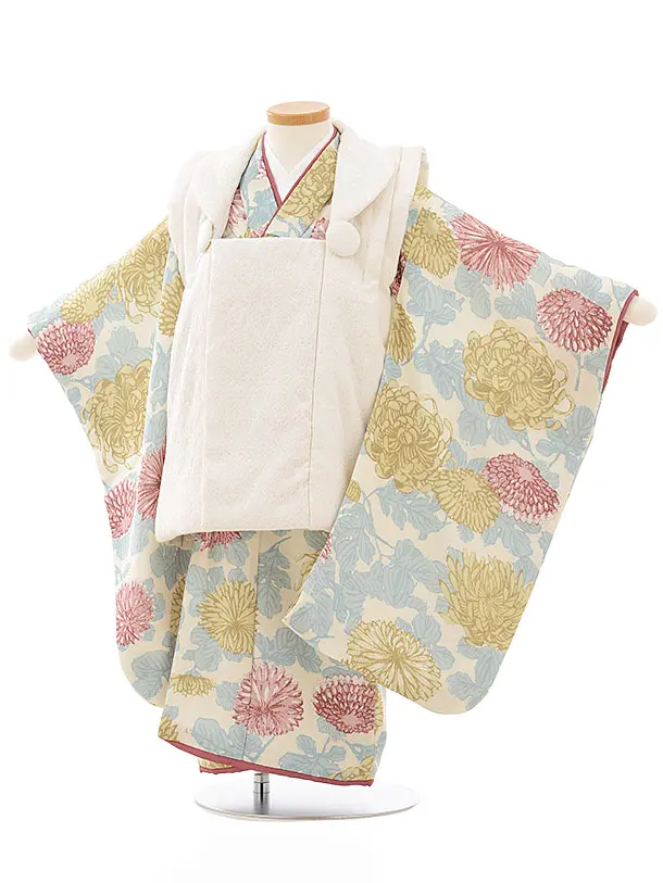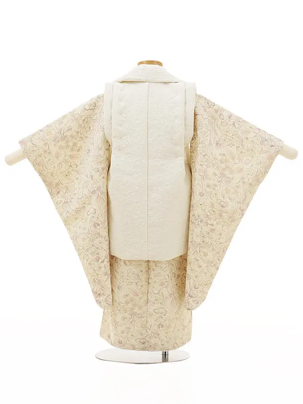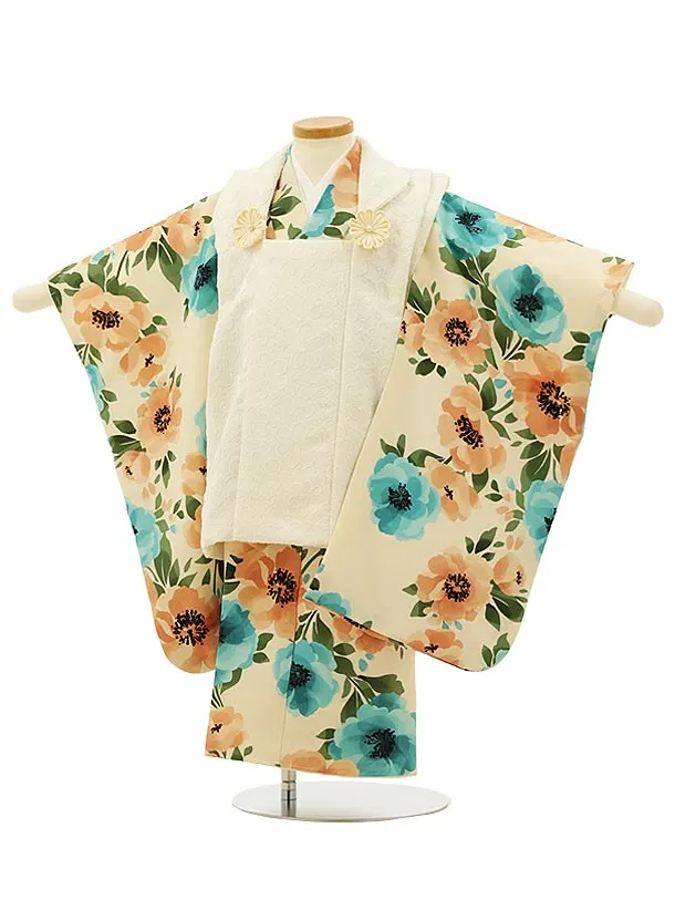 七五三レンタル(3歳女児被布)4498白xクリーム小花