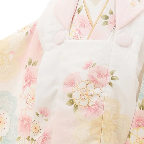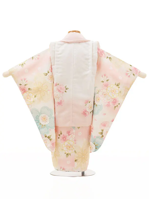 七五三レンタル(3歳女児被布)4504 白×ピンク 八重桜