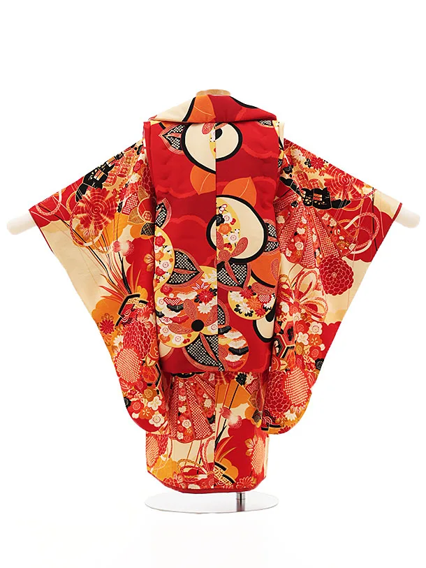 七五三レンタル(3歳女児被布)4515 LOWRYS FARM 赤クリーム雲に橘