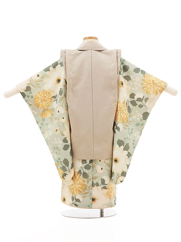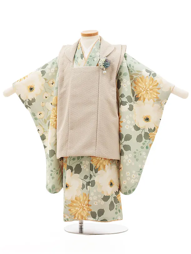 七五三(3歳女児)4529 花わらべベージュ×ペールグリーンレトロフラワー