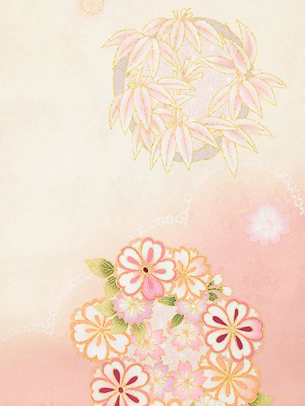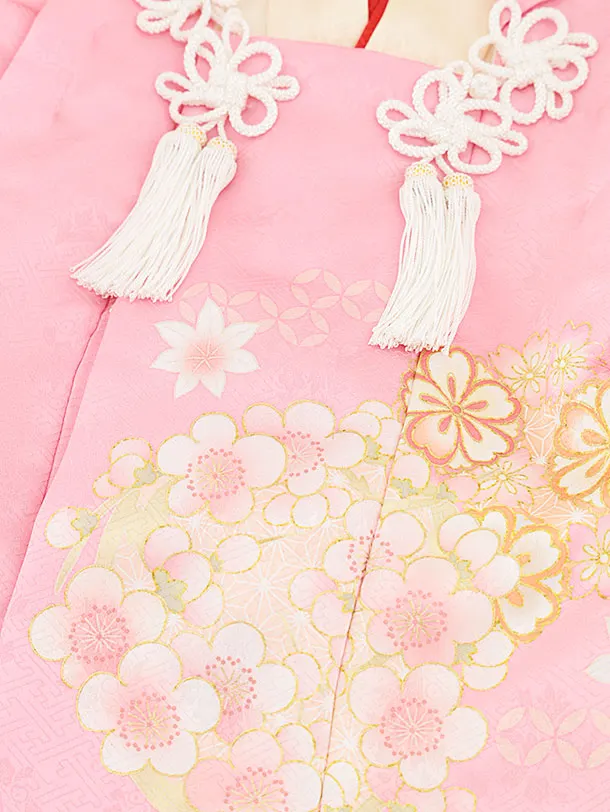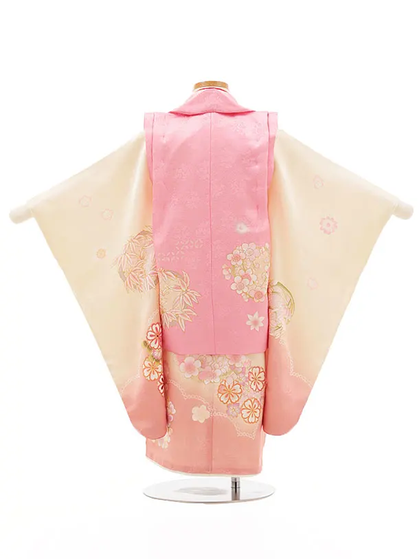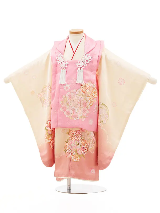七五三レンタル(3歳女児被布)4535【正絹】ピンク×クリームぼかし花丸
