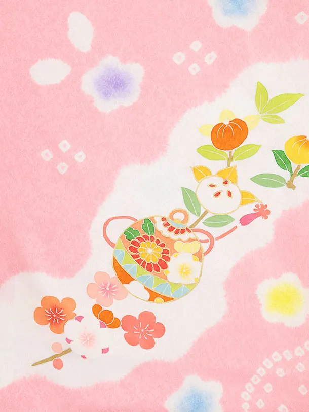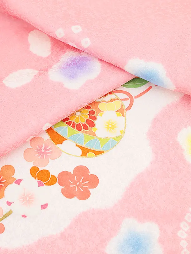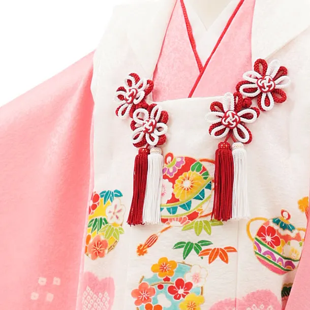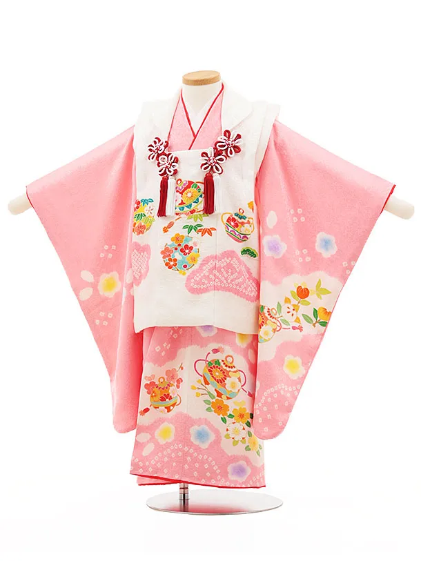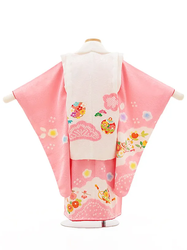 七五三レンタル(3歳女児被布)4548【正絹】白×ピンク 鞠鈴