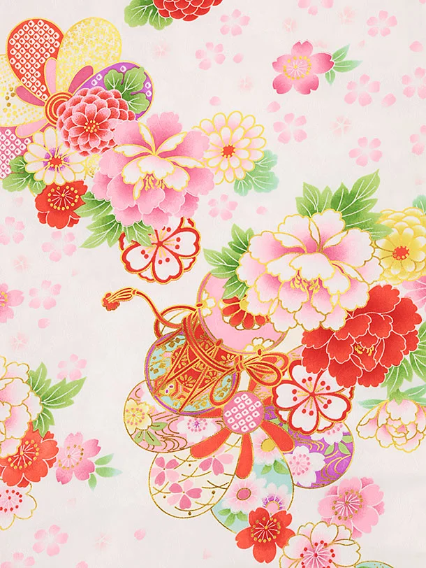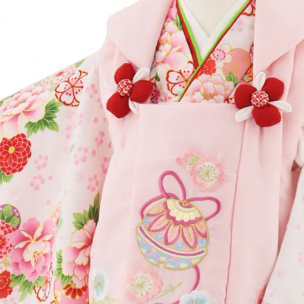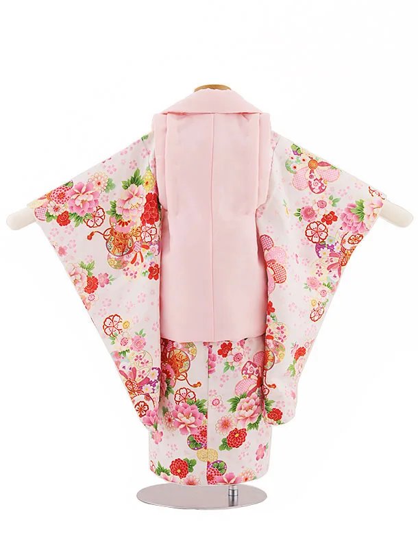 七五三レンタル(3歳女児被布)4554 ピンク刺繍梅×白ねじり梅