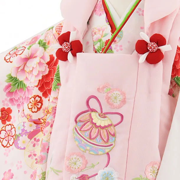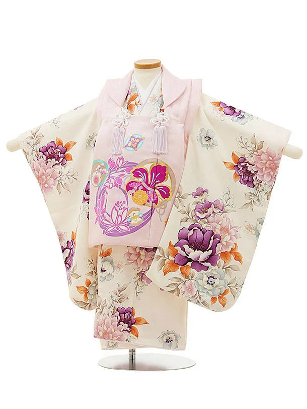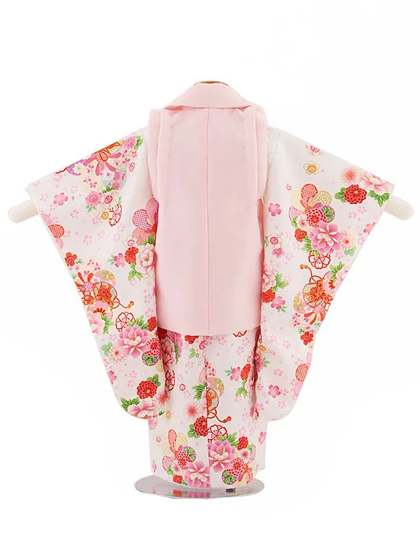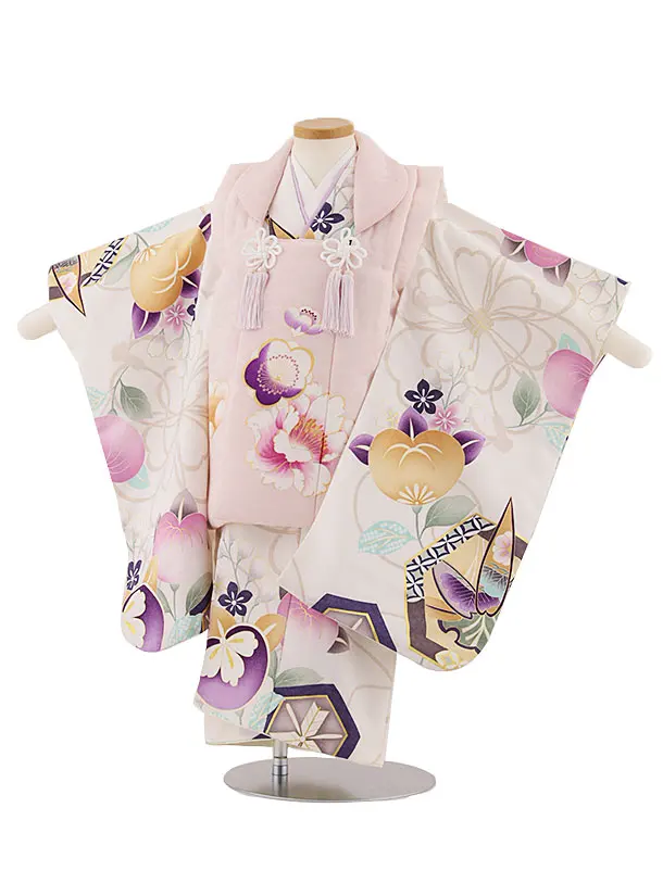七五三レンタル(3歳女児被布)4556 ピンク刺繍梅×白ねじり梅