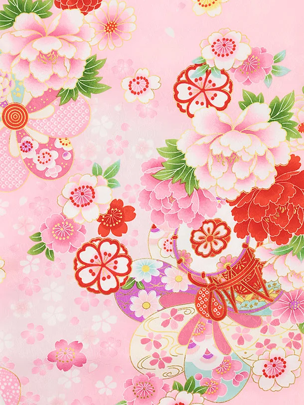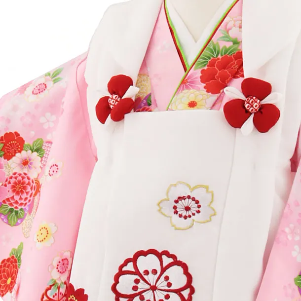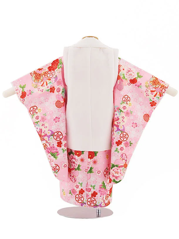 七五三レンタル(3歳女児被布)4557 白刺繍桜×ピンクねじり梅
