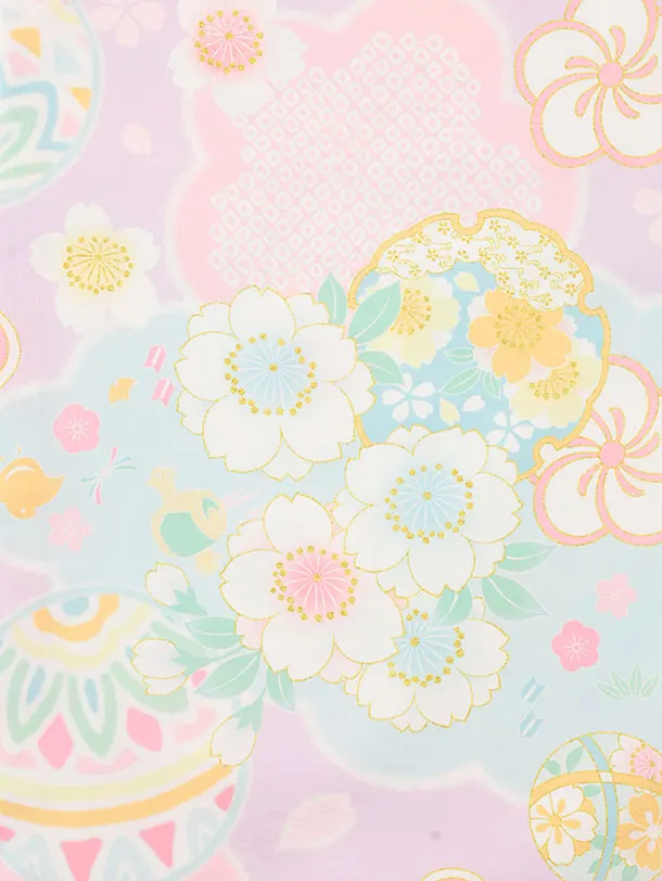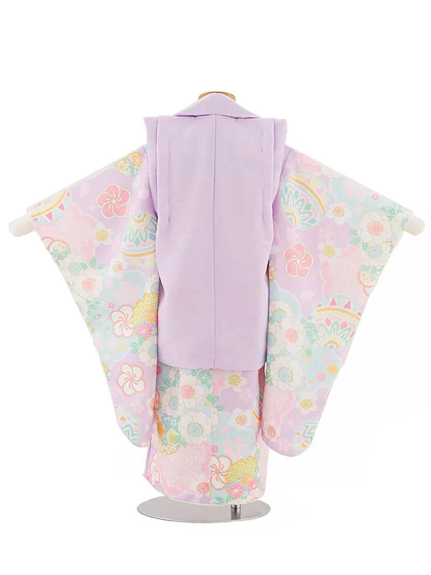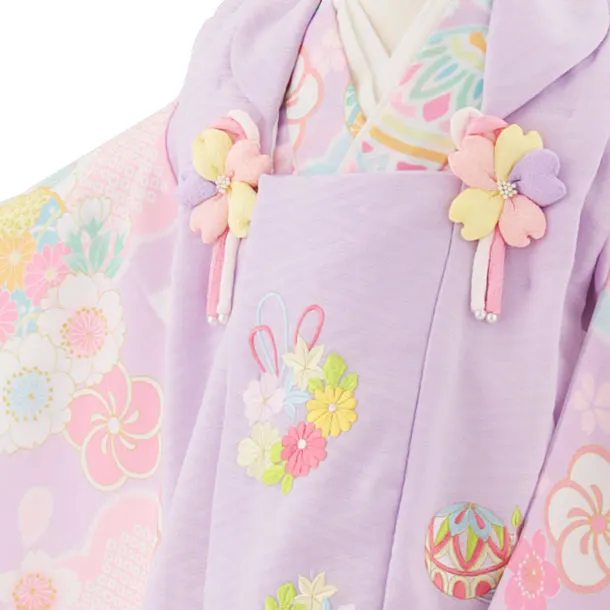 七五三(3歳女児)4560 パープル花刺繍×パステルパープルまりと花