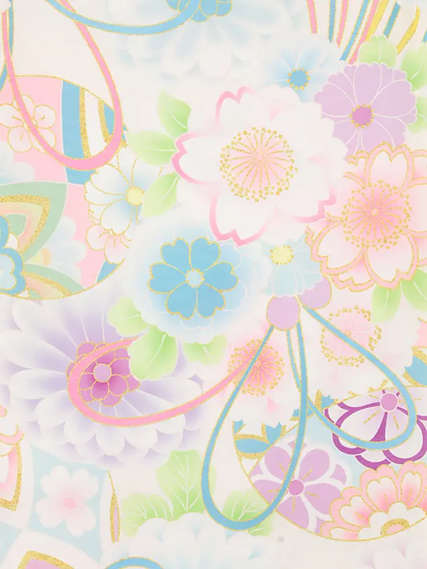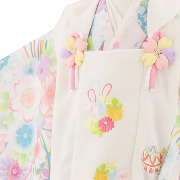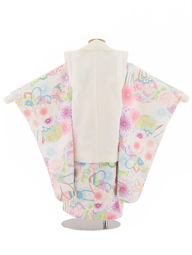 七五三(3歳女児被布)4563 アイボリー花刺繍×白まりと梅菊