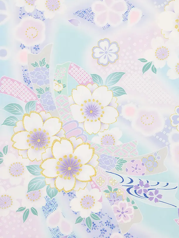 七五三(3歳女児被布)4565 水色×水色桜熨斗