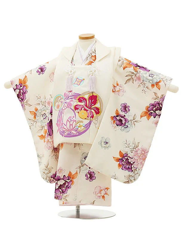 七五三レンタル(3歳女児被布)4570 白×白地牡丹
