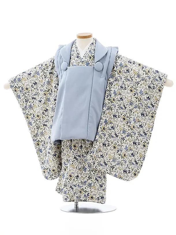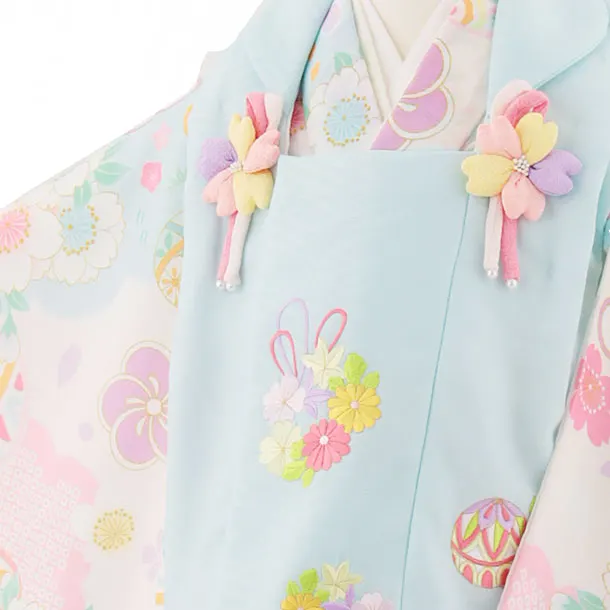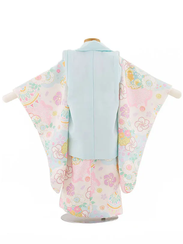 七五三レンタル(3歳女児被布)4573 水色×クリームまりとねじり梅