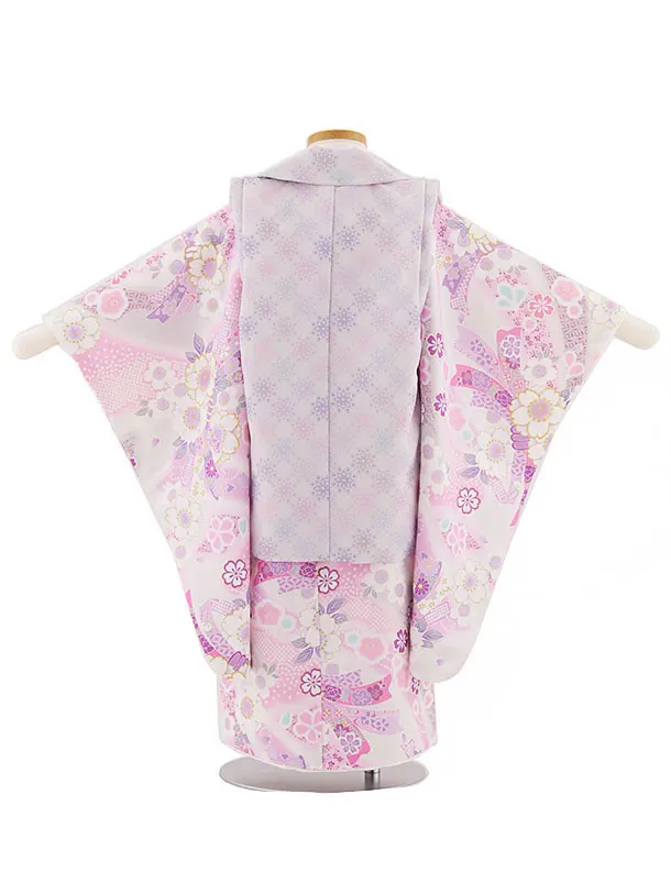 七五三レンタル(3歳女児被布)4577 グレー×淡グレー桜熨斗