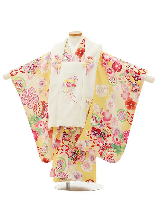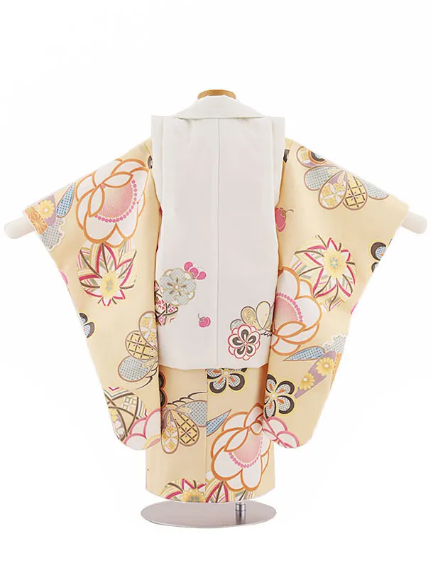 七五三レンタル(3歳女児被布)4580 白×クリーム梅とまり