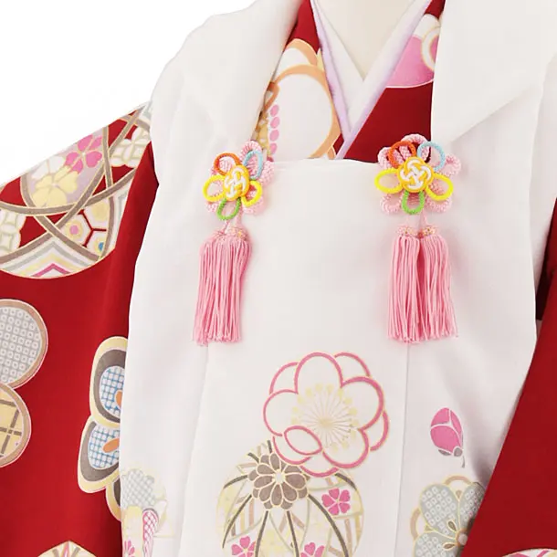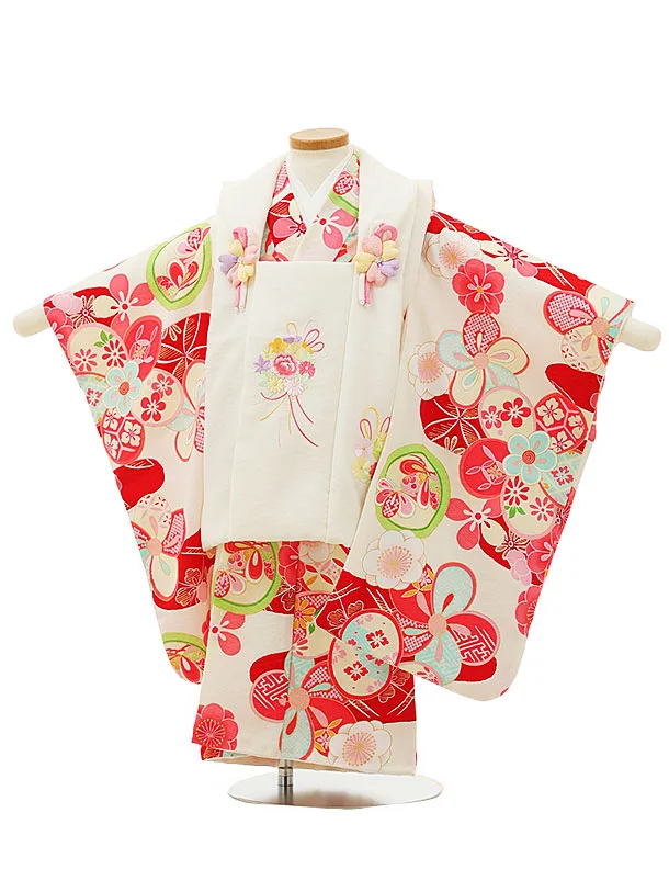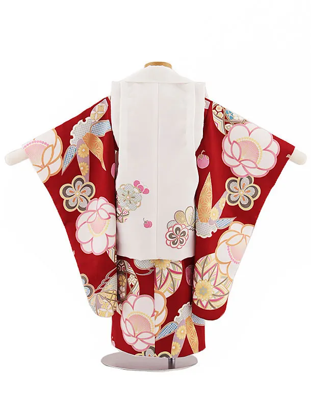 七五三レンタル(3歳女児被布)4581 白×赤地梅とまり
