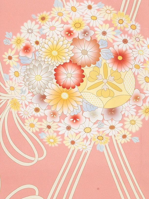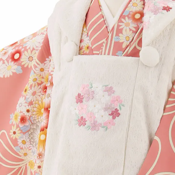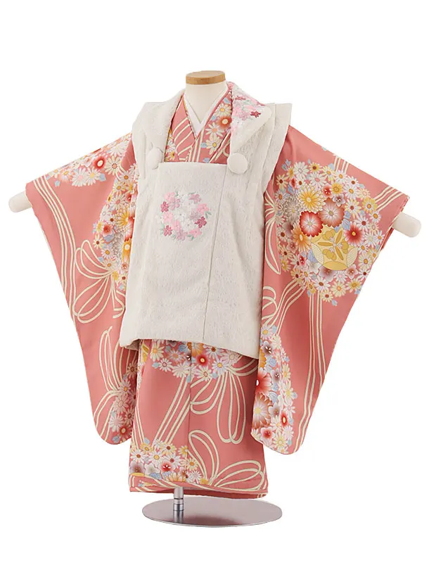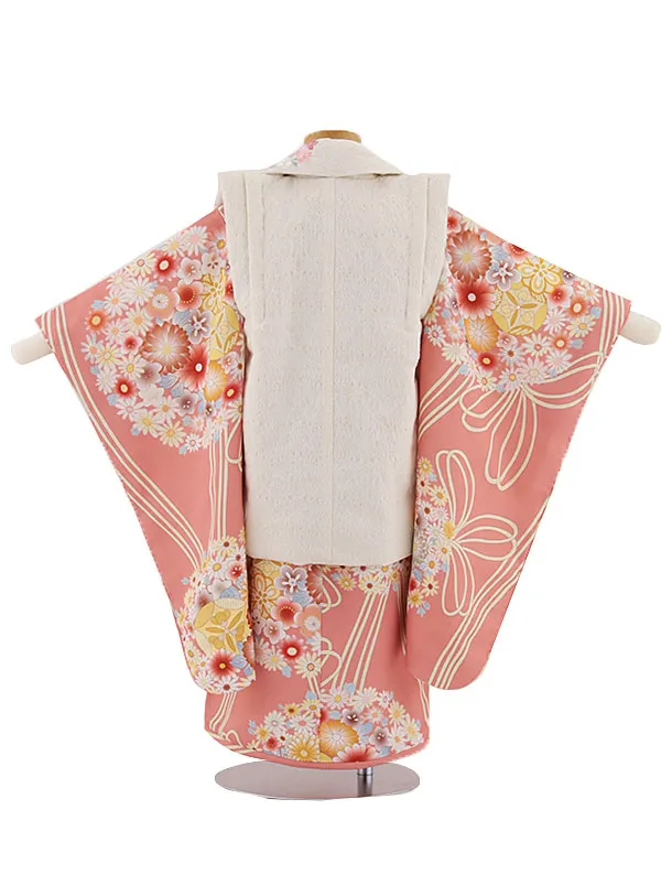 七五三レンタル(3歳女児被布)4599 アイボリー刺繍桜×ピンク薬玉