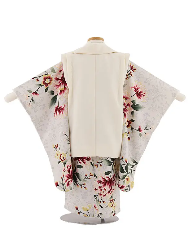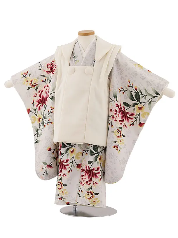 七五三レンタル(3歳女児被布)4603 白×グレー地ダリア