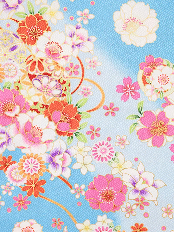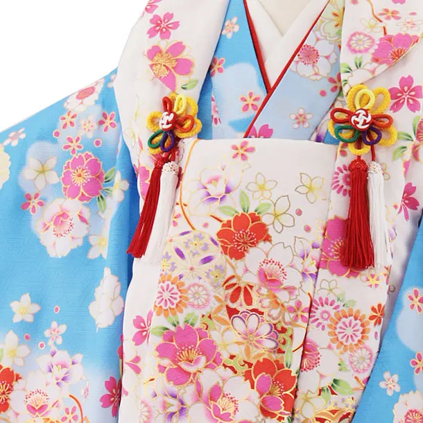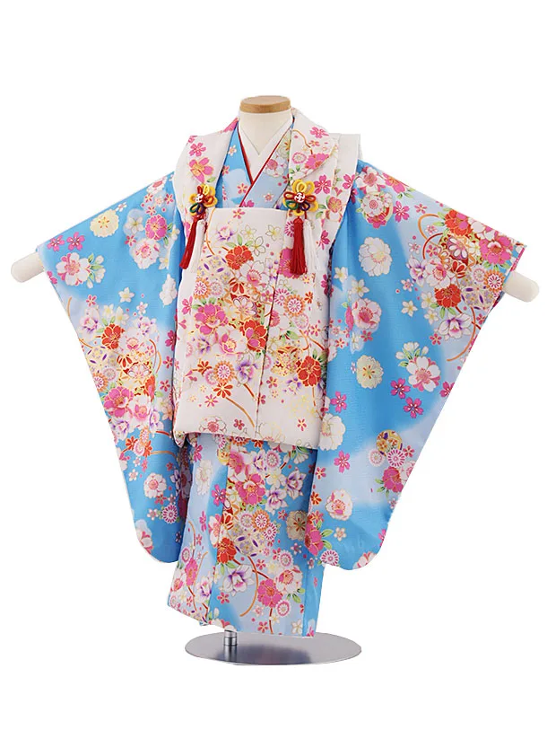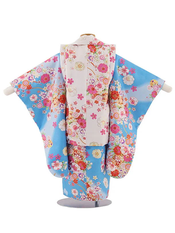 七五三レンタル(3歳女児被布)4608 白×水色ぼかし桜づくし