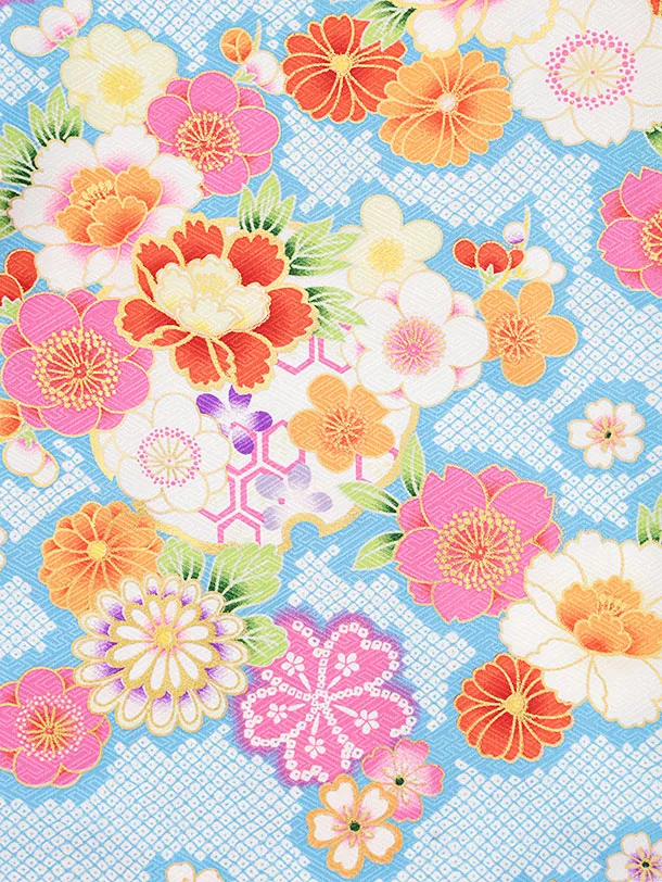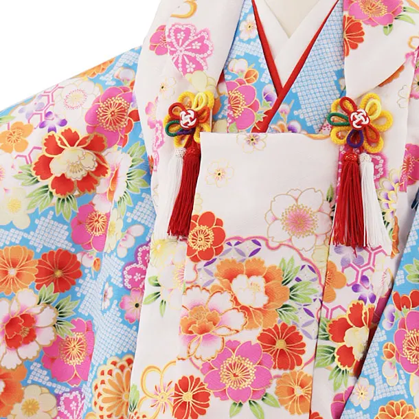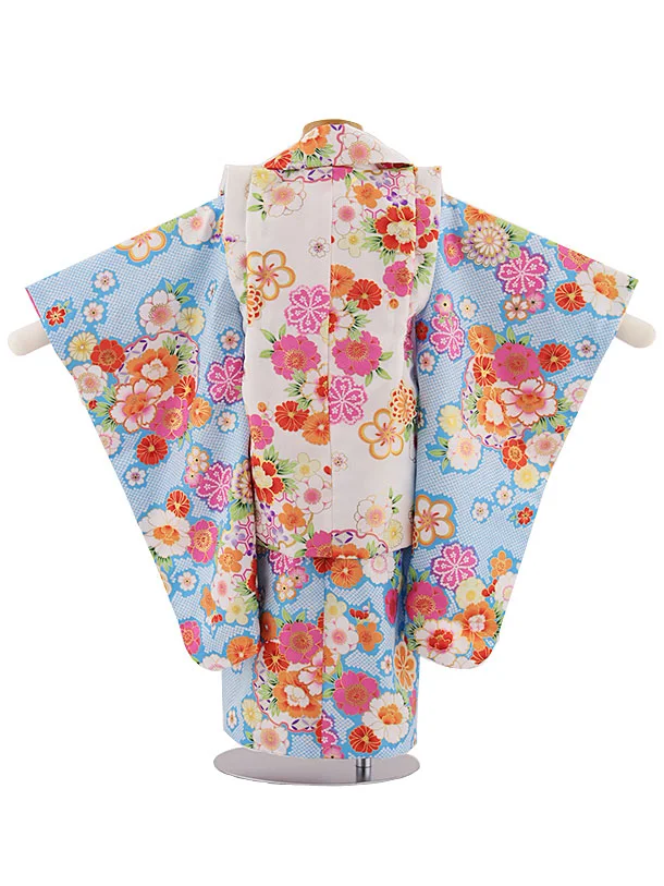 七五三レンタル(3歳女児被布)4614 白×水色疋田柄花づくし