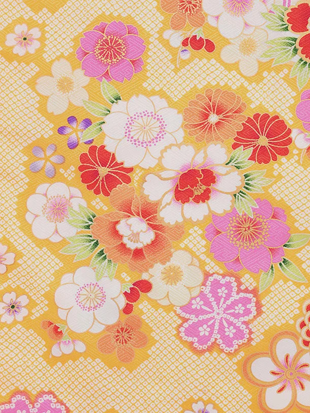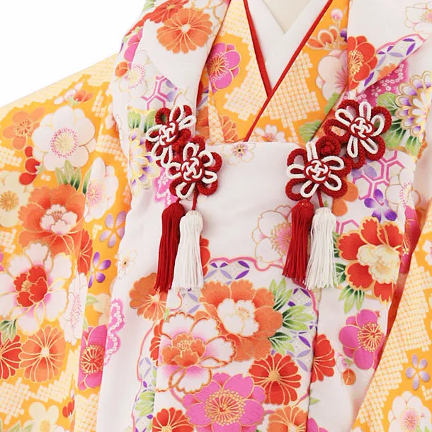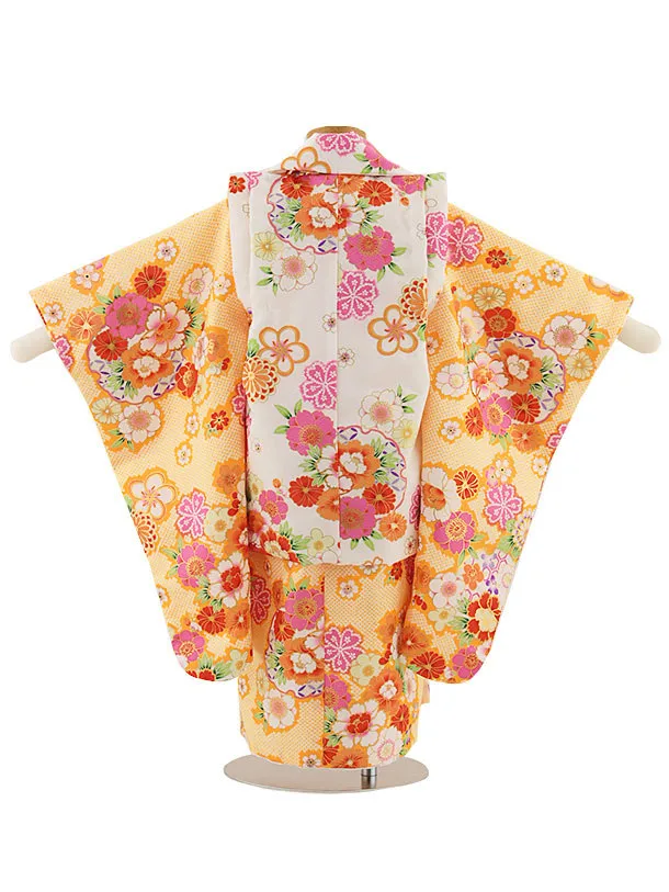 七五三レンタル(3歳女児被布)4615 白×オレンジ疋田柄花づくし