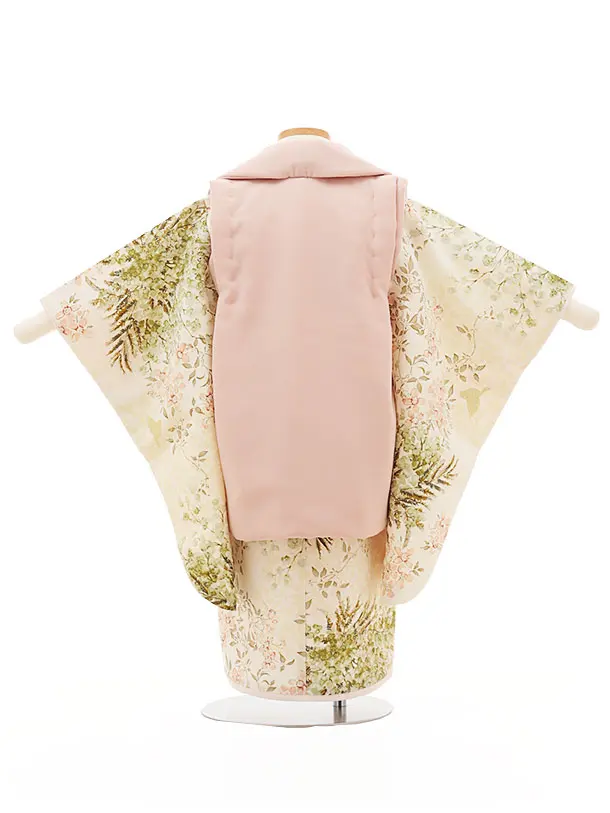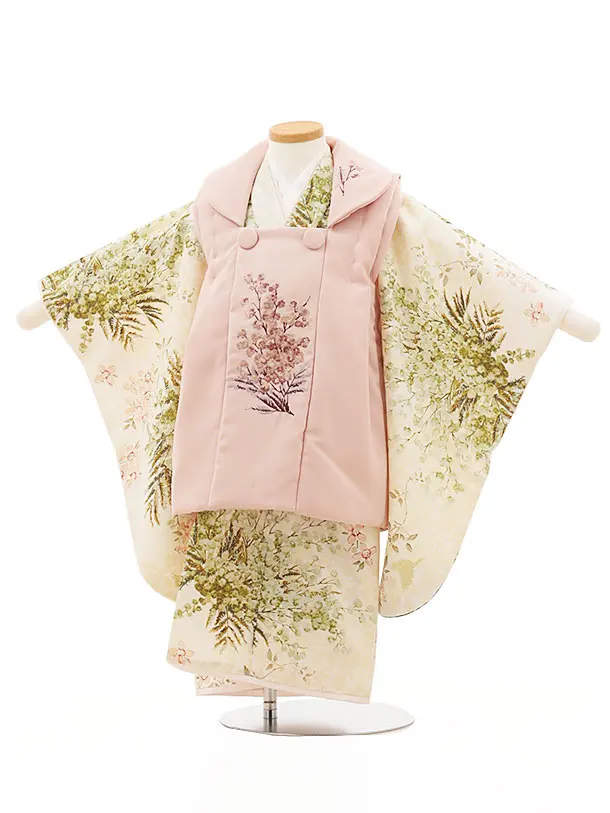 七五三(3歳)4621 Sugar Kei ピンク刺繍ミモザ×クリーム色ミモザ