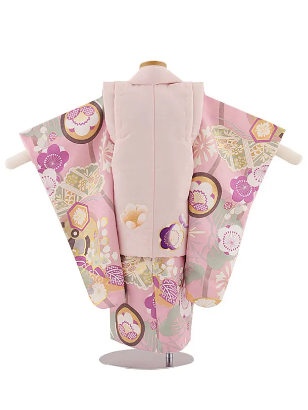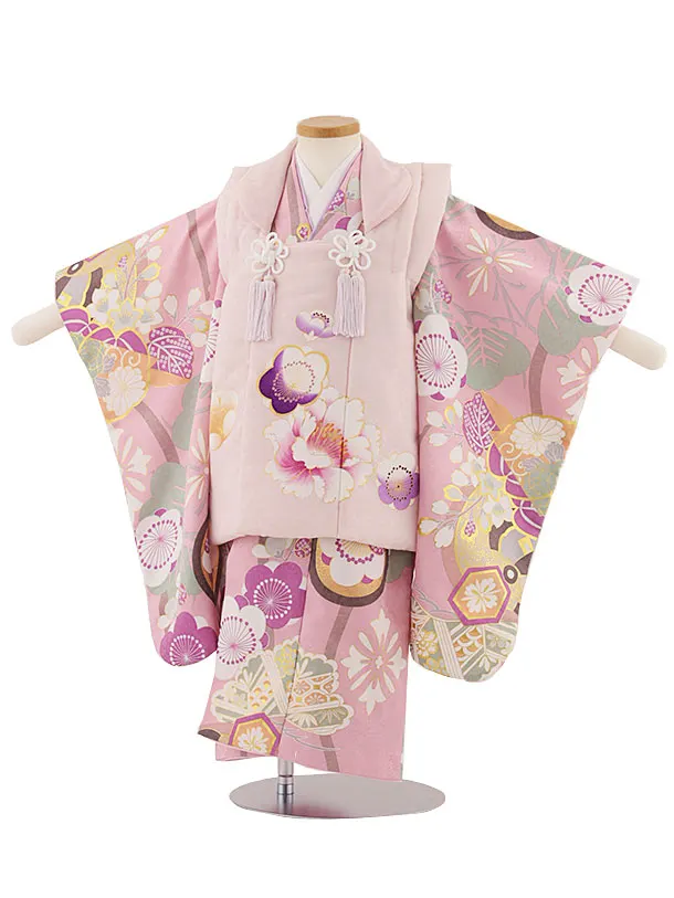 七五三レンタル(3歳女児被布)4627 ピンク×丸紋に松竹梅ピンク