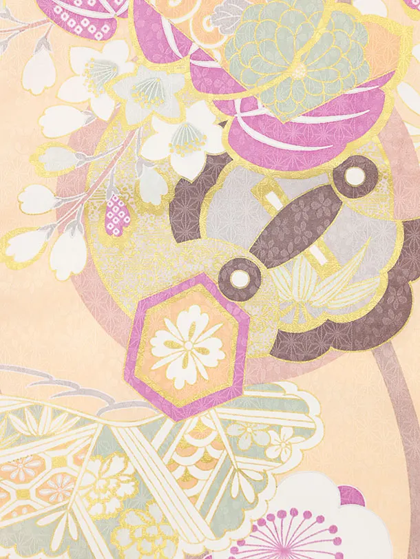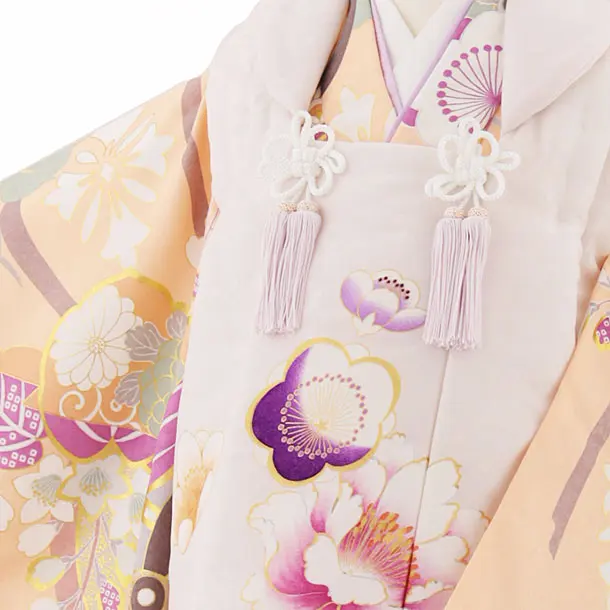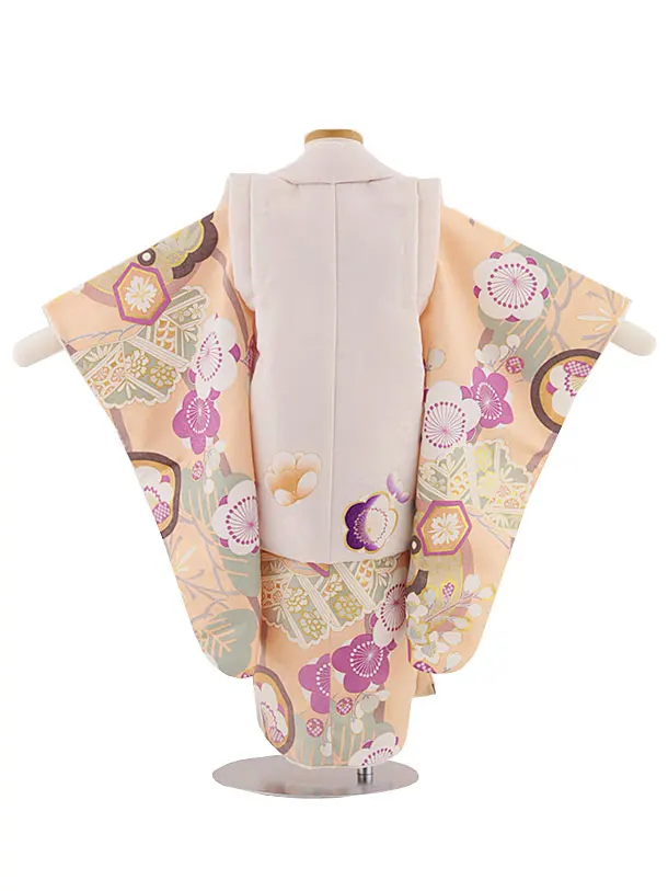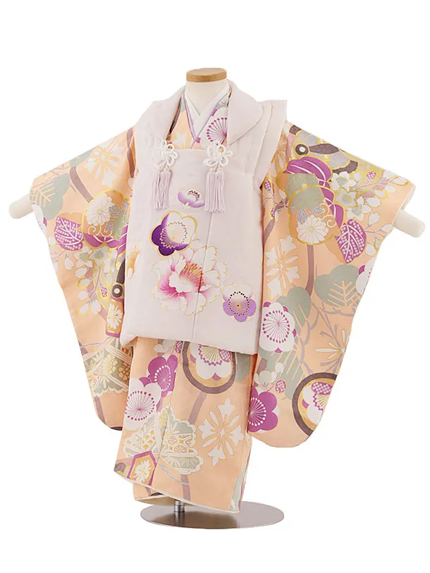 七五三レンタル(3歳女児被布)4628 薄ピンク×丸紋に松竹梅サーモンピンク