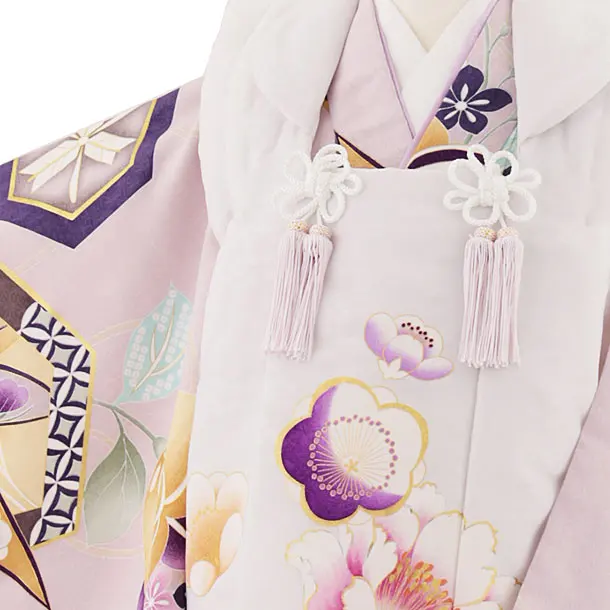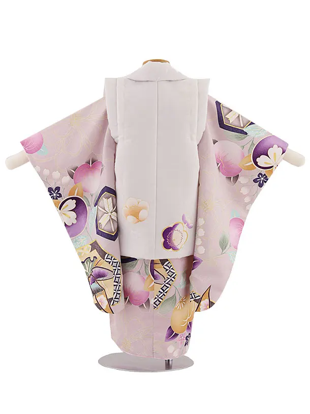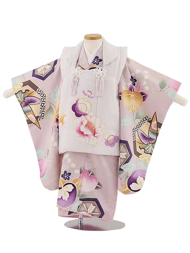 七五三レンタル(3歳女児被布)4630 白×ラベンダー 橘に亀甲笹