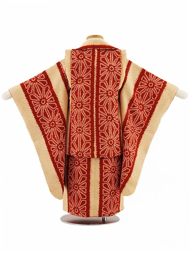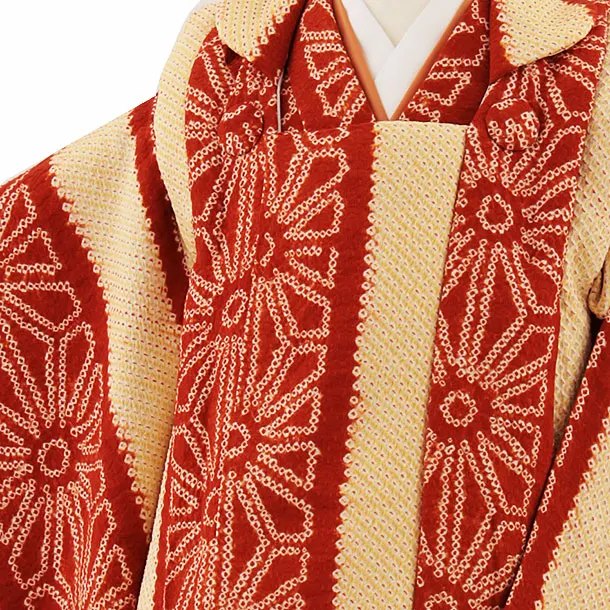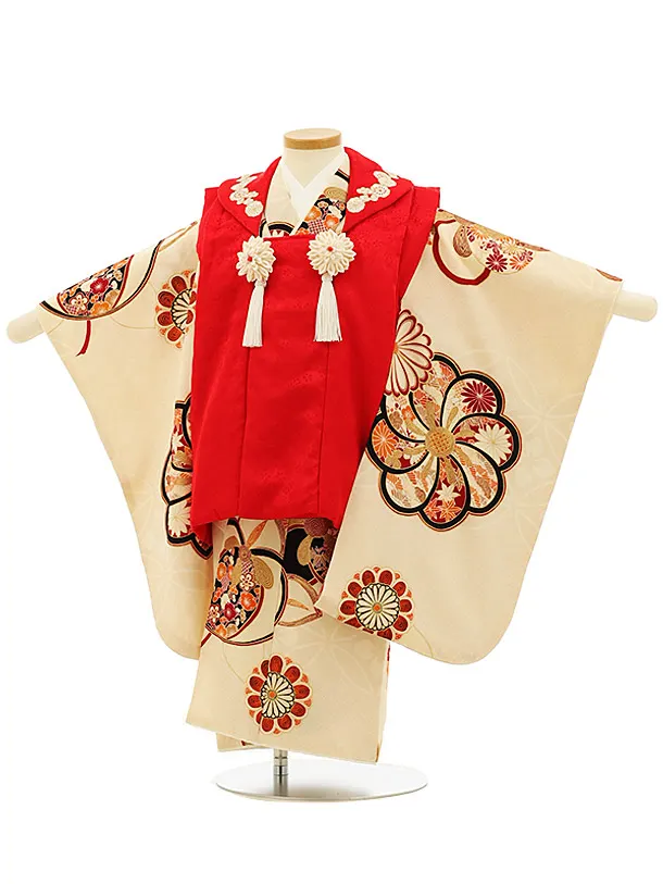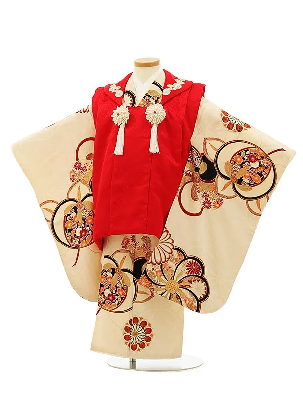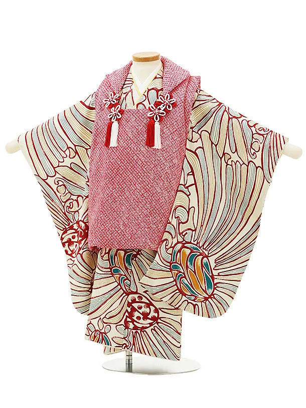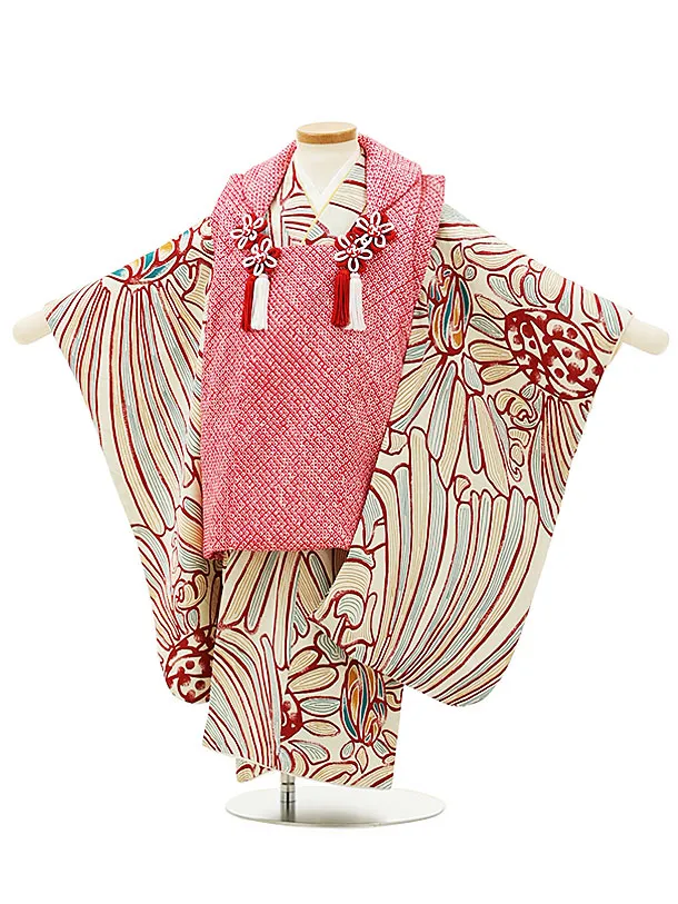 七五三レンタル(3歳女児被布)4643【正絹】ベージュ絞り×海老茶絞り柄